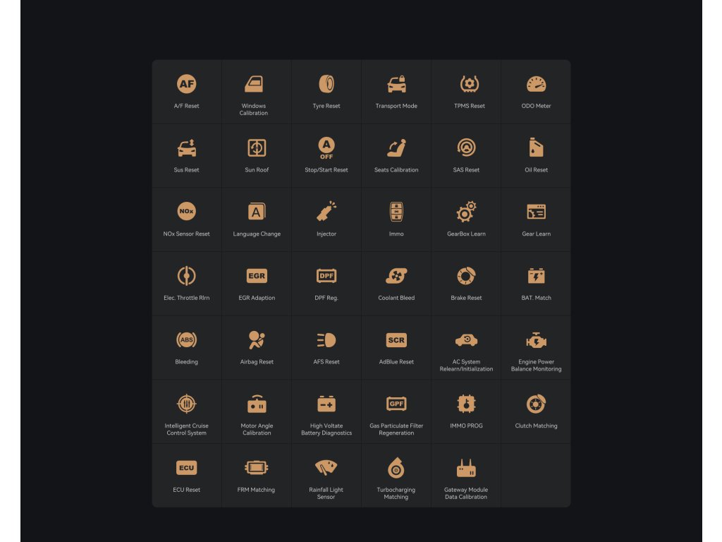 Umožňuje diagnostiku, online nastavenia, programovania, parametrizácie, kalibrácie, aktualizácie jednotiek, odomknutie skrytých funkcii, navigované funkcie aj pre najnovšie vozidlá vďaka podpore odokmnutia SGW- security gateway FCA, Renault, Dacia, Kia, Hyundai, Alfa Romeo, Jeep, Lancia… a SFD ochrany Volkswagen, Škoda, Audi, Seat, Cupra…
