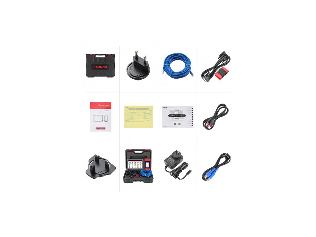 V balení sada diagnostickej hlavice, 10 palcového tabletu s ochranným púzdrom a veľkokapacitnou batériou, nabíjačka, predlžovací adaptér, licenčný štítok.