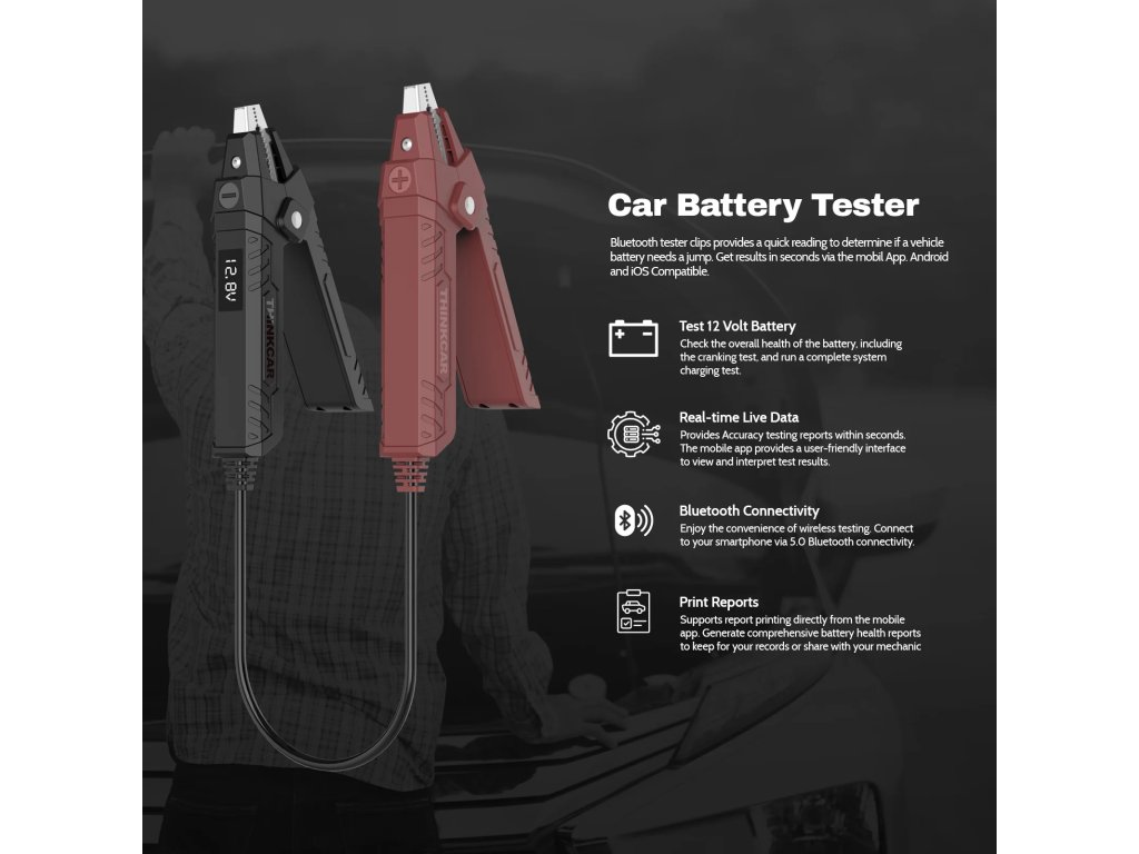 Využíva technológiu Bluetooth 5.0, vďaka čomu ponúka rýchly a stabilný prenos dát. Zároveň má nízku spotrebu energie, čo ho odlišuje od bežných testerov batérií. Stačí si stiahnuť aplikáciu Thinkcar, pripojiť sa cez Bluetooth a okamžite získate detailné informácie o stave a výkone vašej batérie.